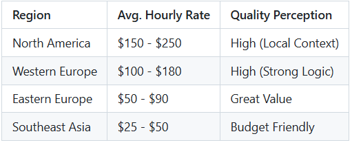 Developer rates are all over the place. In the US, you might pay $150 per hour. In Eastern Europe, that drops to $60. In Southeast Asia, it could be $30. Each comes with its own set of communication risks.